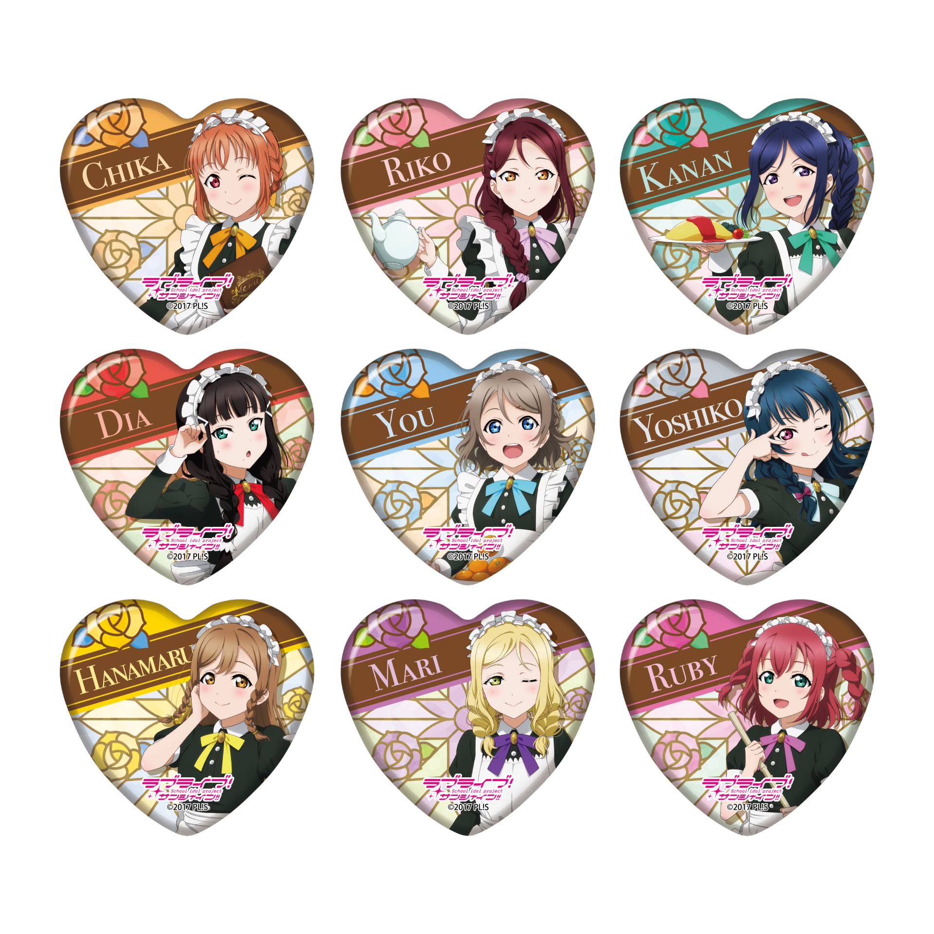 ・ハート缶バッジ(お給仕衣装) (全9種・ランダム) 550円(税込)